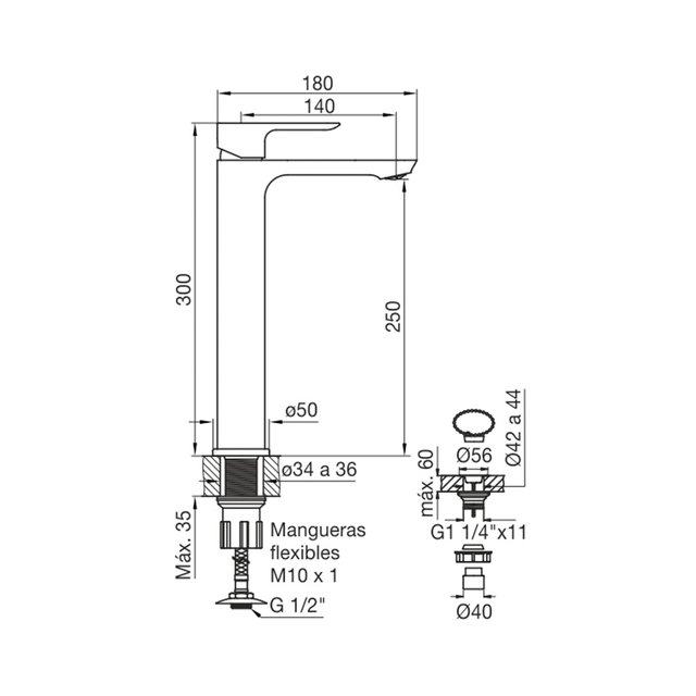Modelo de monocomando de juegos altos con cierre cerámico que facilita su uso garantizando un cierre suave.